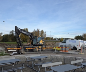Vid Max restaurang i Trollhättan i ett härligt höstväder utförs för närvarande anläggningsarbeten som omfattar ny parkering, dagvatten fördröjning och olika plats anpassningar för att optimera funktion och miljöhänsyn.